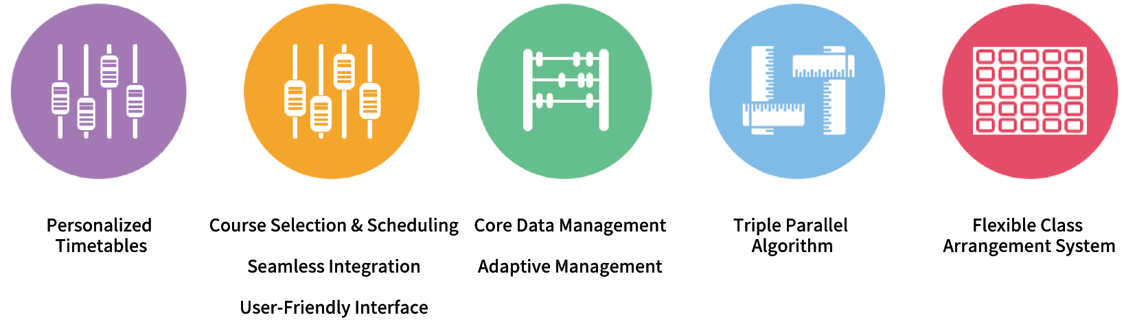 An AI-powered class scheduling system featuring personalized timetables for each student, implemented through triple parallel algorithm technology.