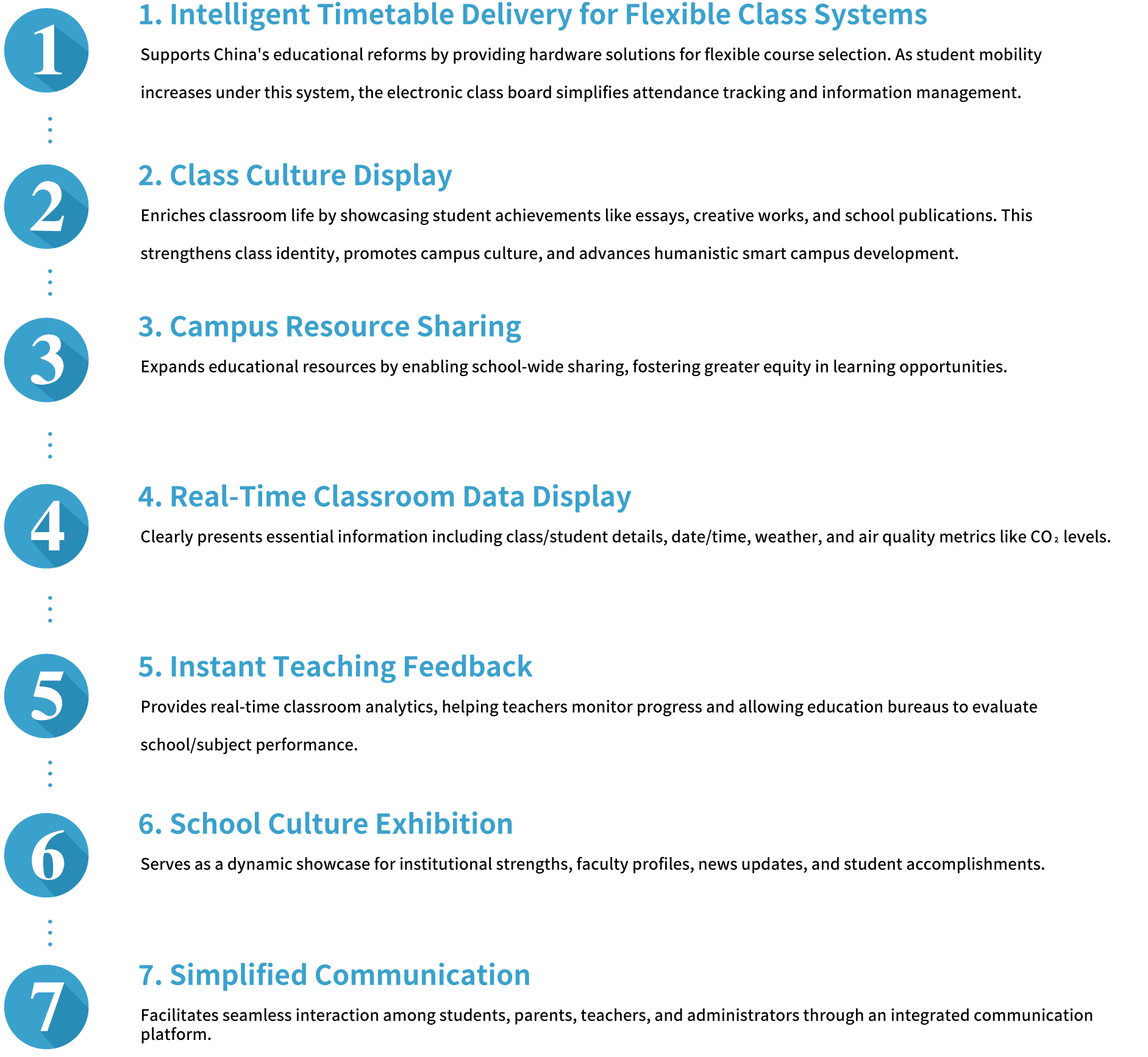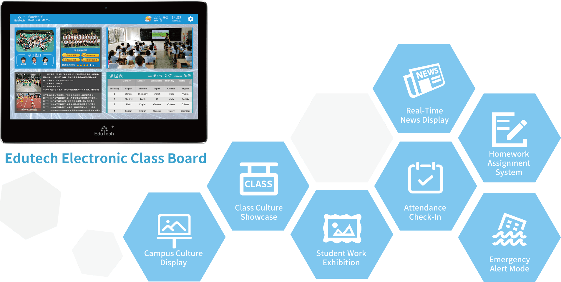 Edutech's electronic bulletin board serves as a comprehensive classroom hub that combines multiple functions including external publicity, internal information distribution, attendance tracking, and interactive touch capabilities. This innovative solution replaces traditional blackboard newspapers and bulletin walls, providing students with an engaging platform to expand their knowledge, broaden their horizons, and develop exploration and self-management skills. The system facilitates rich multilateral interaction between students, teachers, and parents, representing a successful fusion of conventional bulletin board functions with modern information technology. As part of the educational informatization process, this solution demonstrates the potential for deep integration with school management systems, offering a glimpse into the future of connected classroom technology.