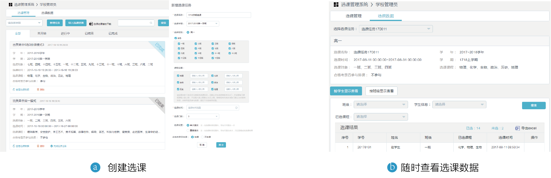 This module enables the creation of course selection tasks, supporting large-scale online student self-registration. Teachers can analyze selection patterns and provide personalized guidance to students regarding their academic choices.