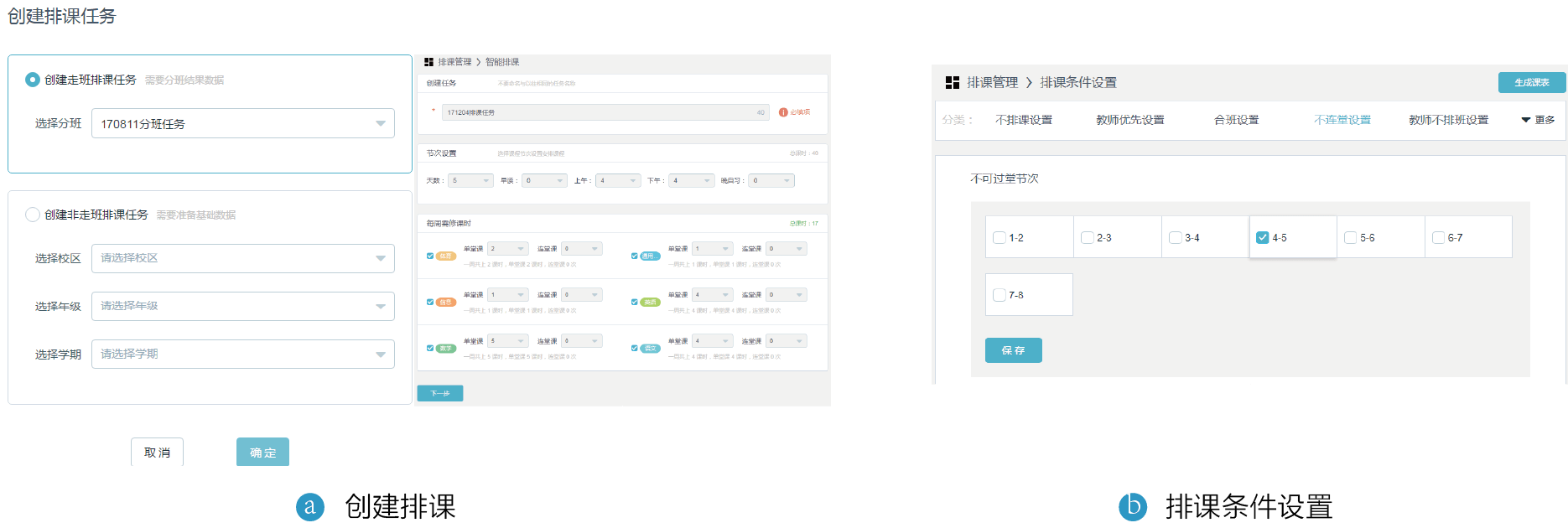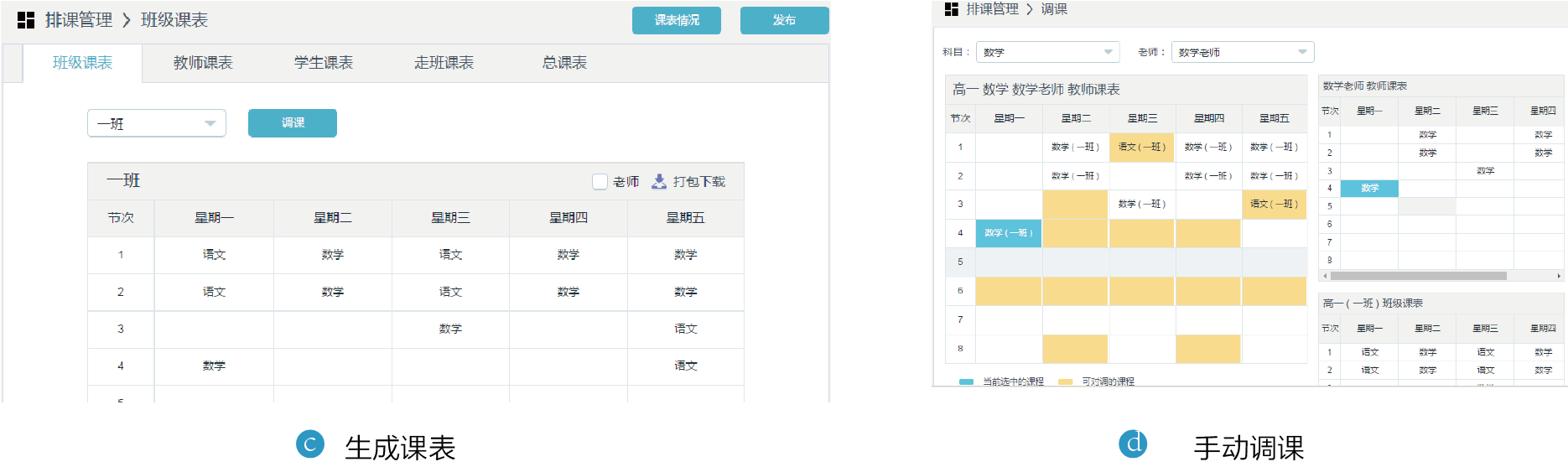After configuring scheduling rules, the system generates optimized timetables with a single click. The platform also permits manual adjustments to accommodate special scheduling needs or last-minute changes.