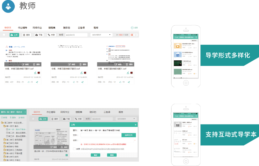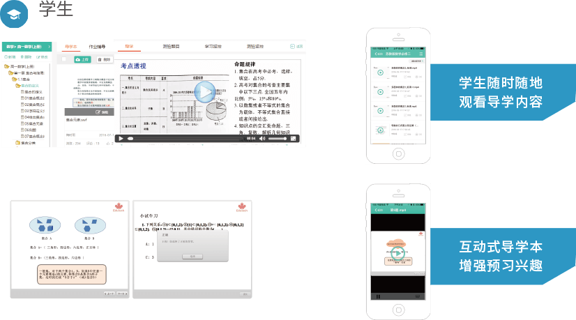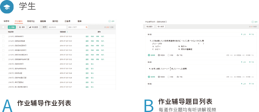 Specially designed for exam-bound students, the HappyClass Home work Guide System provides daily exam explanations for students to access at anytime, allowing them to learn at their own pace. This resolves the issue of"one student pulling the leg of the entire class." Meanwhile, teachers can record video expositions on key questions and can easily share the resource with the entire school on our Homework Guide Platform, improving the overall performance of the school.