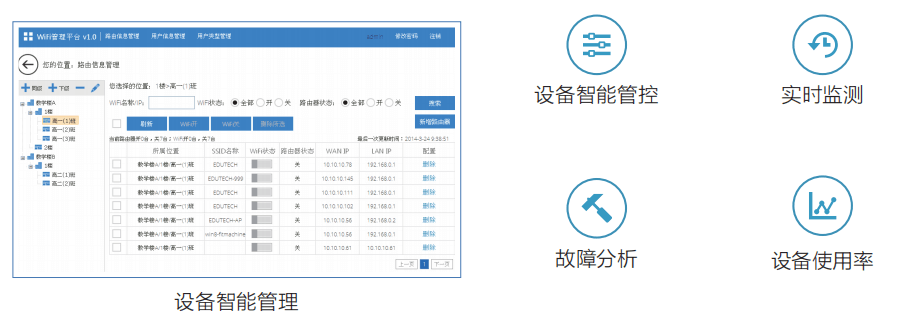 3. 解决传统无线覆盖技术无法满足教室高密度、高并发的教学应用需求,彻底解决教室WiFi掉线问题。